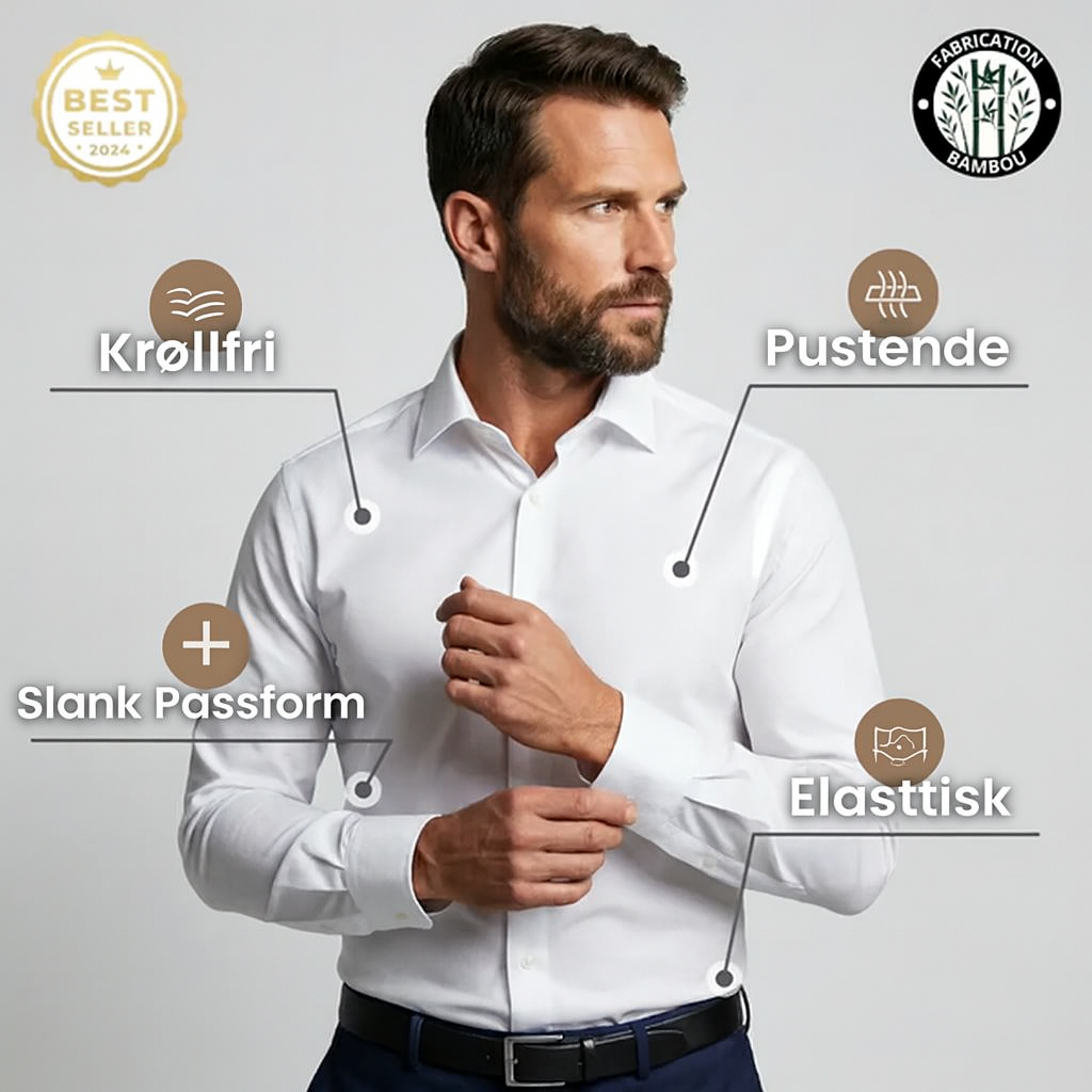 • Krympfri: Takket være den innovative stoffet, ser skjorten fresh ut hele dagen, uten at du trenger å bekymre deg for rynker eller bretter – ideelt for travle arbeidsdager.
