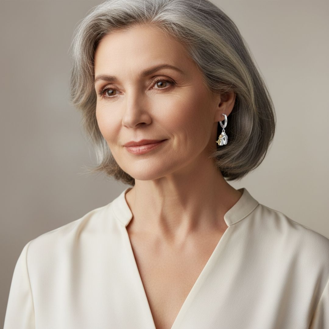 Disse vakre øredobbene med det unike motivet av en jente som kjærlig omfavner hunden sin, symboliserer kjærlighet, lojalitet og et spesielt bånd. Utført i elegante nyanser av sølv og gull, er de perfekte for alle som bærer sine firbeinte venner i hjertet. ❤️🐶